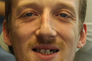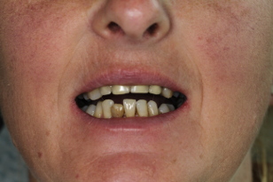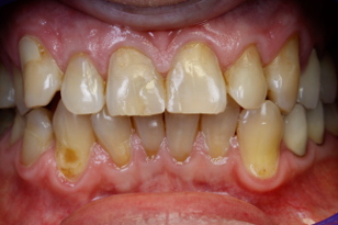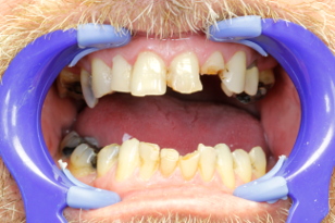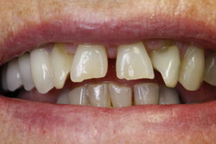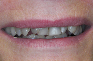 Incisivos quebrados, irregulares/tortos e muito restaurados