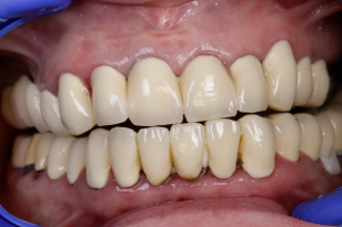 Coroas de porcelana e.max inferiores com porcelana fundida ao metal na parte posterior