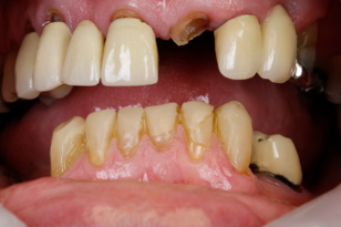 Inferior: ponte de porcelana fundida ao metal de 8 unidades